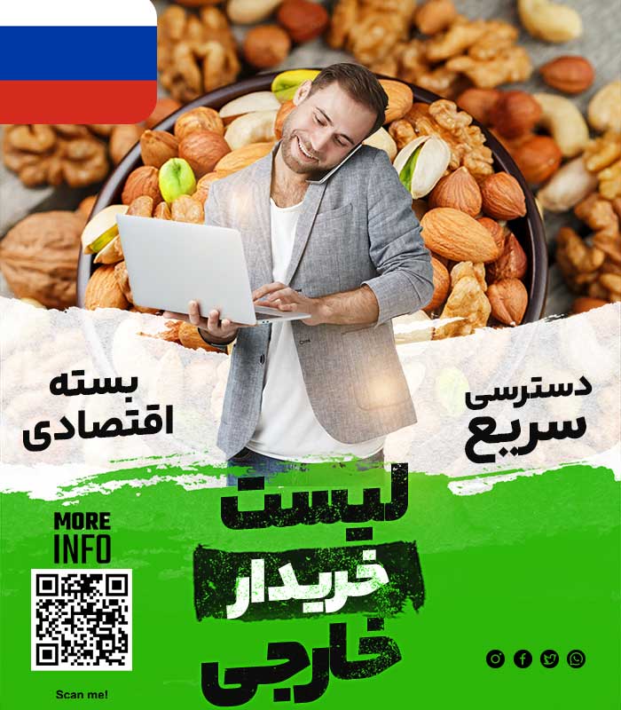 شما می توانید با تهیه لیست مشتری خشکبار در روسیه ماه ها از رقبای خودتان جلوتر بیافتید.و با کمترین هزینه موفق به کسب صادرات خشکبار به روسیه شوید. و با مشتری خشکبار در روسیه ارتباط بلند مدتی ایجاد کنید.با اضافه کردن صادرات خشکبار به روسیه به کارنامه کاری خود می توانید کسب و کار خود را توسعه دهید.